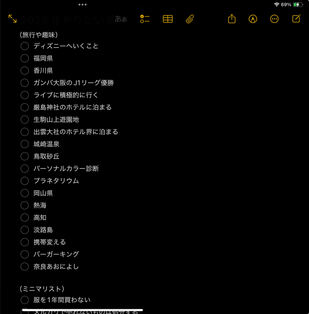 そのようなやりたいことを今ではスマホ・タブレットでリストを作成、保存しており昨年はリストのうち75%(27/36)のことを実行に移すことが出来ました!