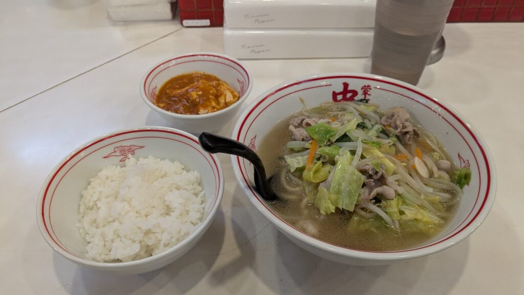 その際に頼んだのももちろん『塩タンメン』、Tくんはいつも定食(ミニサイズのごはんと麻婆のセット)を追加しています。ちなみに妻のSちゃんは辛いものが全くダメなため塩タンメンだけを頼んでいました。