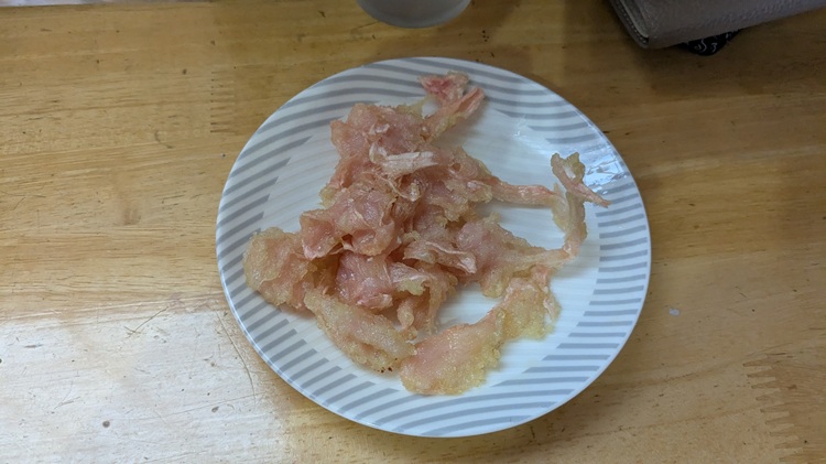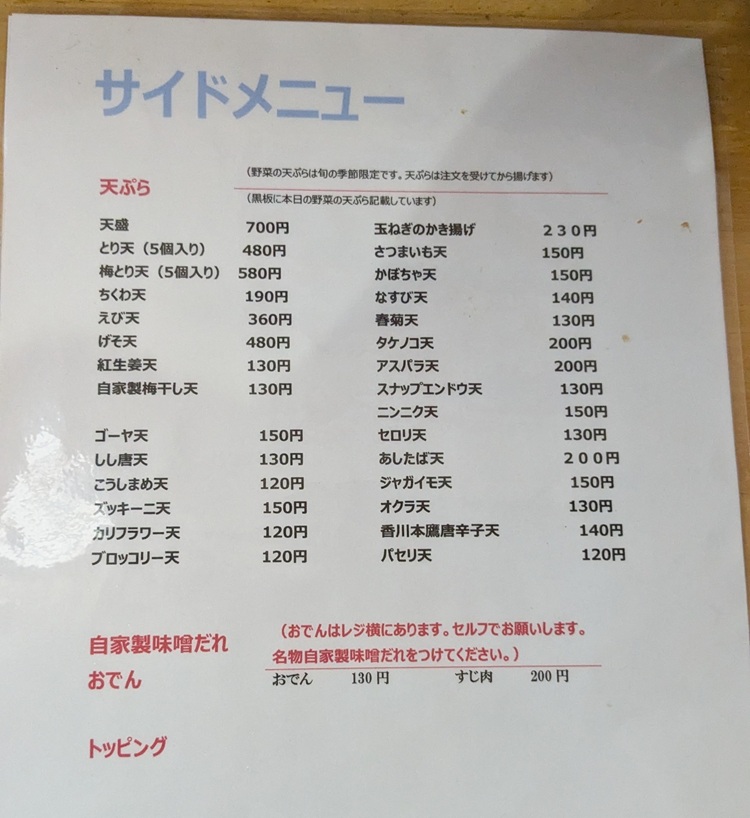 サイドメニューではとり天(5個入り、480円)もおすすめですが、かなりボリュームがあるのでTくんのような小食気味の人には紅生姜天がお勧めです(^^)/